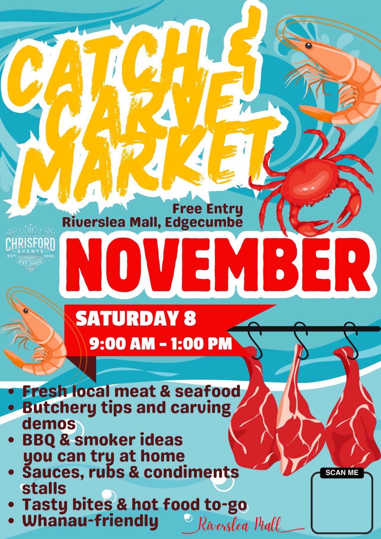 We’re gearing up for something BIG at Riverslea Mall, Edgecumbe – the Catch & Carve Market on Saturday 8 November (9AM–1PM)!