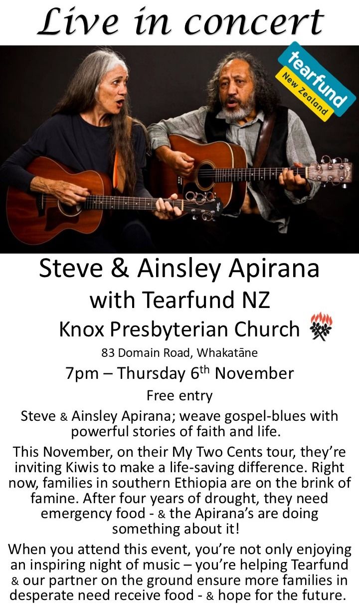 Home Events Live in Concert Steve and Ainsley Apriana with Tearfund Image Live in Concert Steve and Ainsley Apriana with Tearfund Thursday 06 November, 7:00pmSteve and Ainsley Apriana: weave gospel-blues with powerful stories of faith and life.Event Details83 Domain RoadWhakataneBay of Plenty3120New Zealandoffice@ebopparish.nzFind Us OnFree You Might Also Like...