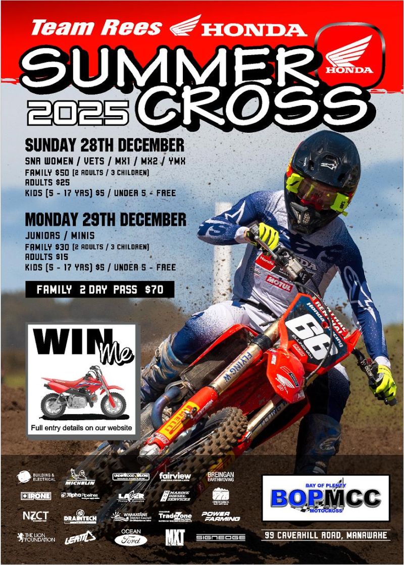 Sunday, 28 and Monday, 29 December. Awakaponga Motorcycle Track, 99 Caverhill Road.